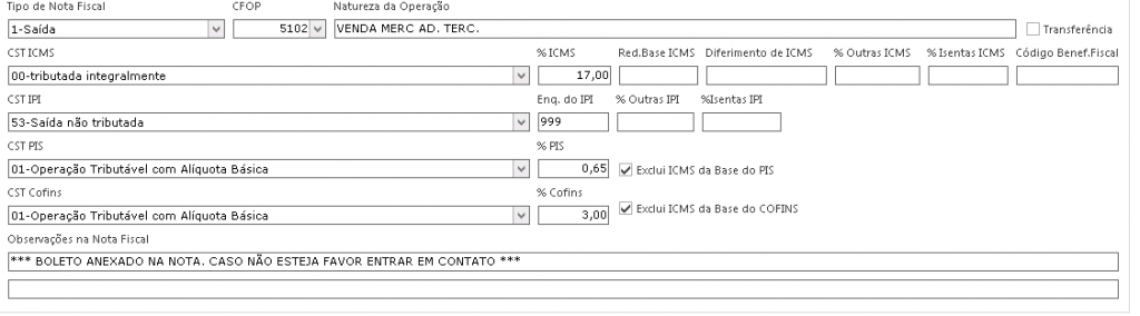 Quando a CST do ICMS for 00, mudar apenas a alíquota do ICMS para 17%