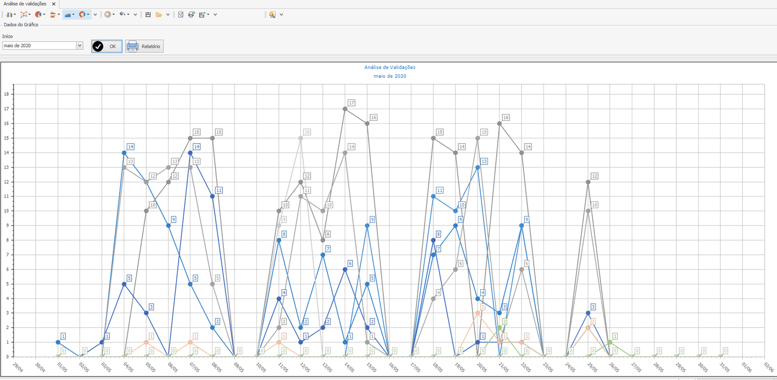 Gráfico diário de validações