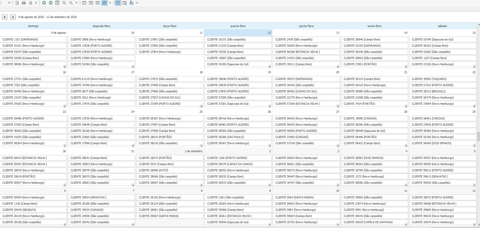 Calendário de agendamentos