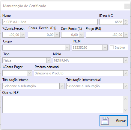 Manutenção de certificado