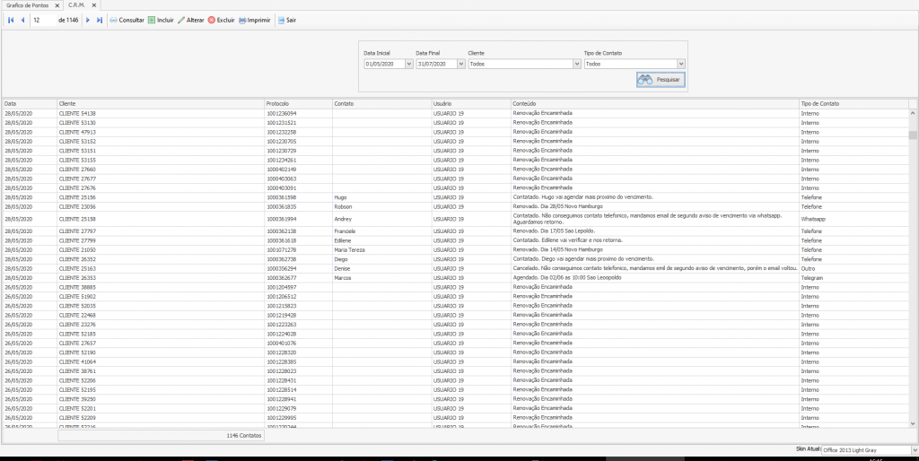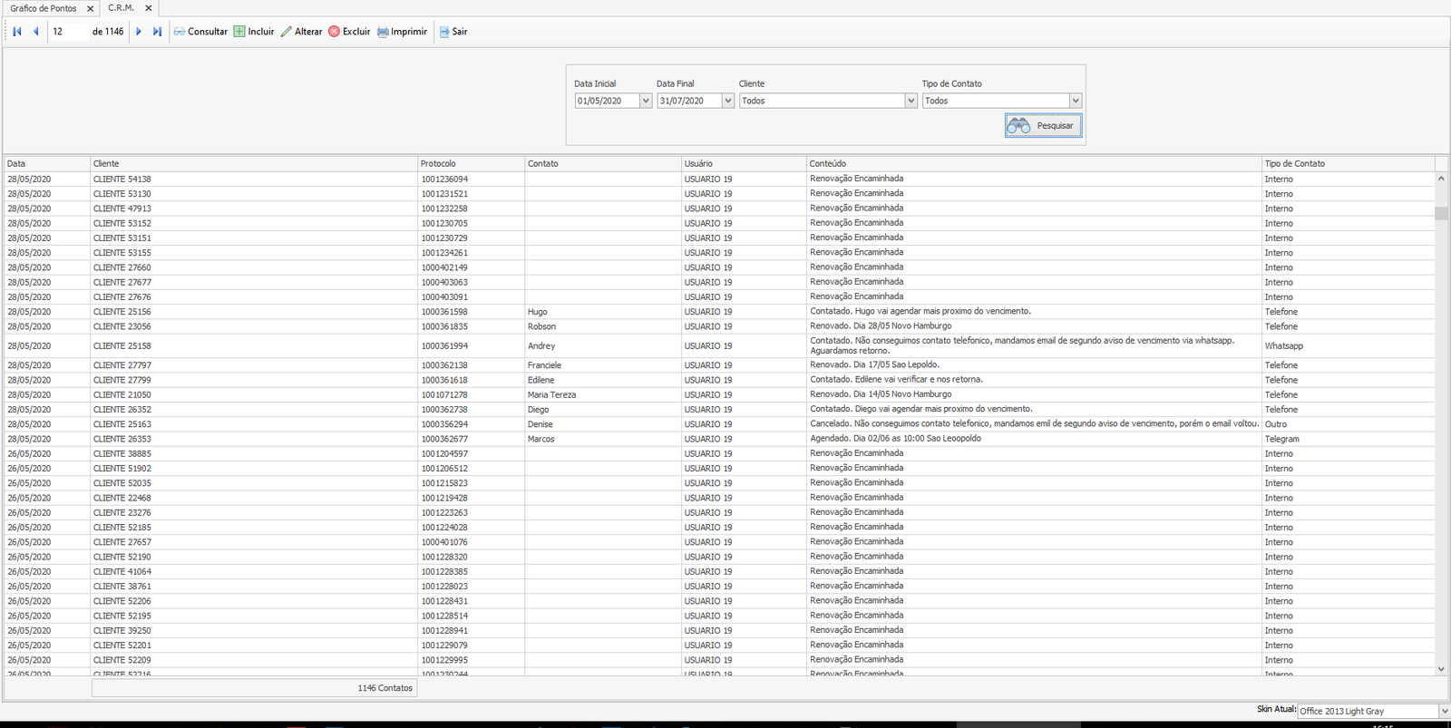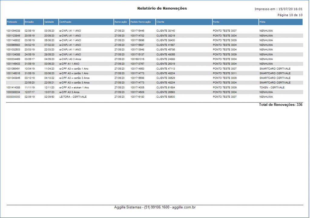 Relatório de renovações