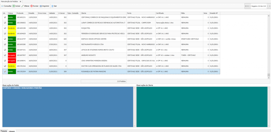 Manutenção de pedidos