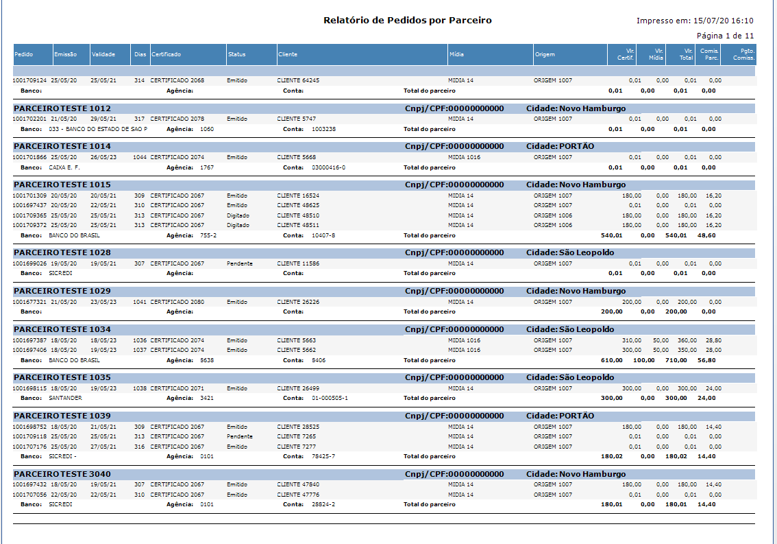 Pedidos por parceiro