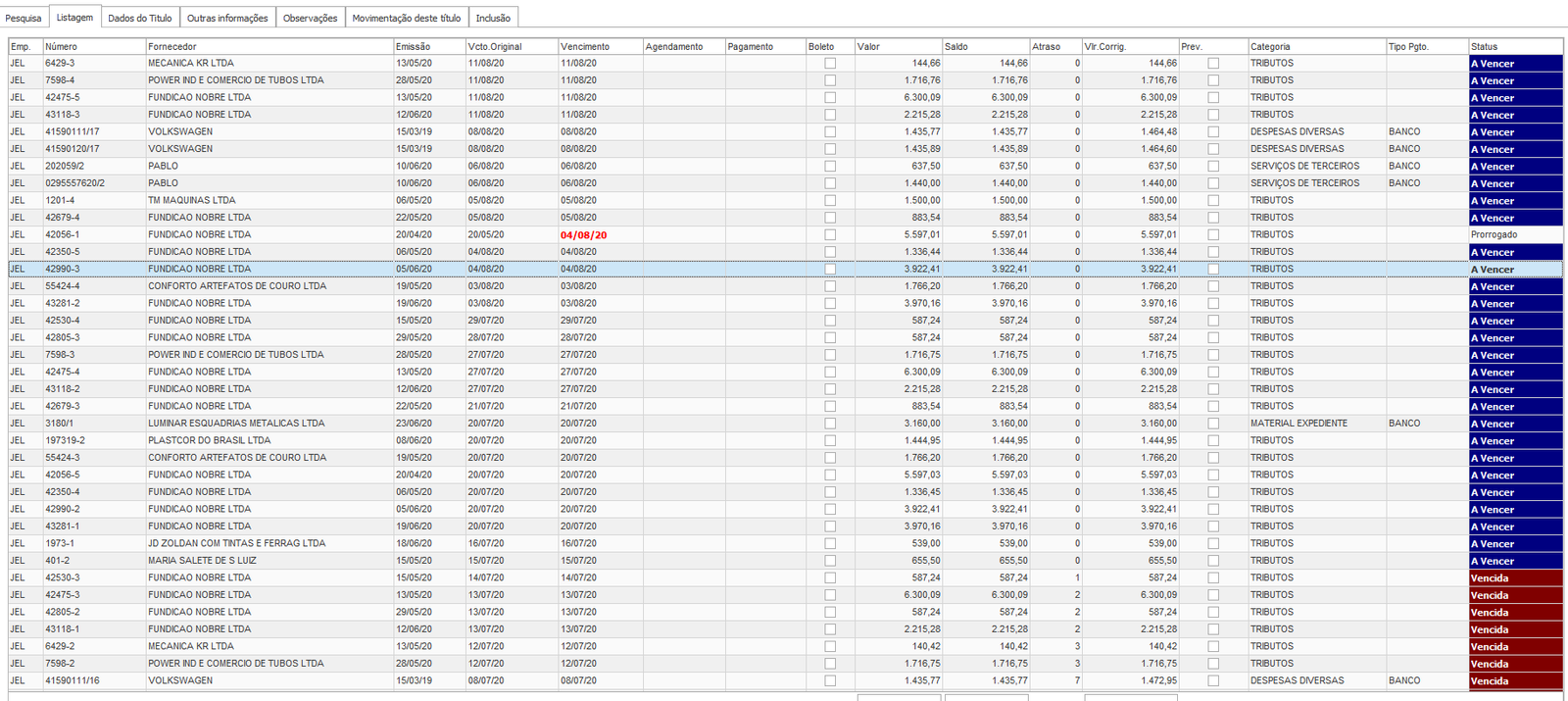 Resumo por status
